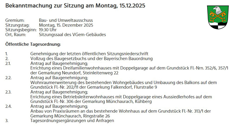 Aktuelle Bekanntmachungen der Gemeinde Aurachtal